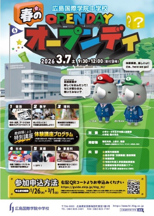 【学校情報】春のOPEN DAY(広島国際学院中学校)