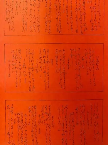 作品は平安時代に書かれた中務集で、鋭く直線的でシャープな書き味が特徴的な作品です。