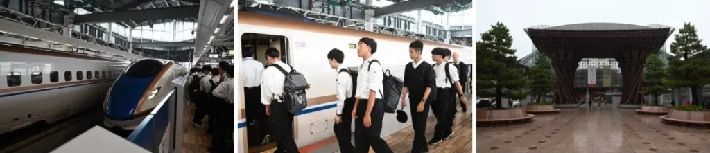 1日目は、山陽新幹線・特急サンダーバード・北陸新幹線を乗り継いで金沢まで移動し、班別自主研修を行いました。