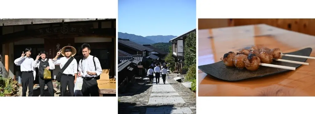 4日目は長野県をあとにし、岐阜県の馬籠宿へと移動しました。馬籠宿は中山道の宿場町で、石畳の街道は当時の面影を残しています。名産品である五平餅やそばを昼食でいただき、名古屋から広島への帰途に着きます。