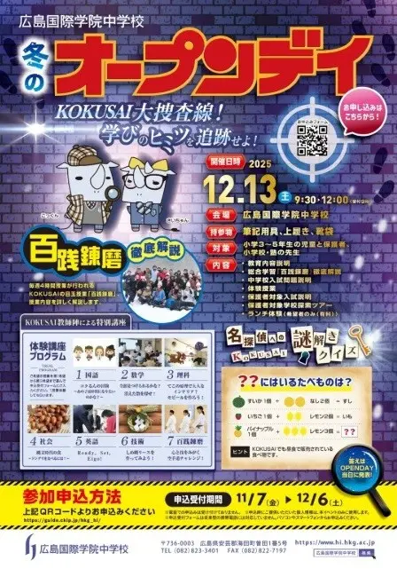 【2025年度】冬のOPEN DAY申込受付開始(広島国際学院中学校)